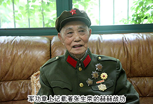 爾后,慰問小隊(duì)一行又來到了老紅軍張生榮家中。“十月里來秋風(fēng)涼,中央紅軍遠(yuǎn)征忙;星夜渡過于都河,古陂新田打勝仗”。這首長征組詩,是紅軍夜渡于都河踏上漫漫長征路的真實(shí)寫照。而老紅軍張生榮再念起這首詩時,卻有著無盡的懷念。說起當(dāng)年的戰(zhàn)斗,老紅軍張生榮,尤其興奮,長征中紅軍搶渡大渡河、17勇士飛奪瀘定橋的戰(zhàn)斗中,作為司號員的張生榮,昂首挺胸吹響了沖鋒號……張老眉胡皆白,耳朵已經(jīng)聽不大清楚,但精神抖擻,坐姿筆體,寬大手掌力氣不小。張老說,這都是練出來的,即使現(xiàn)在還會不時炸些花生米,自我慰勞。只有經(jīng)歷了戰(zhàn)爭的洗禮,才會更加珍惜今天的和平與幸福。才離休那會,張老還經(jīng)常發(fā)揮余熱,到工廠、學(xué)校、機(jī)關(guān)作報告,講長征精神,講革命傳統(tǒng),講白求恩大夫的事跡。