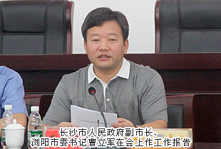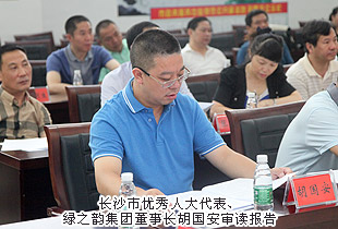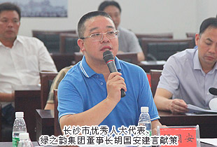 2014年7月29日,長沙市“一府兩院”向市人大代表瀏陽聯(lián)組通報2014年上半年工作會議在瀏陽市政務服務中心成功舉行。長沙市第十二屆人大常委會主任楊順初,長沙市人大常委會副主任趙建強,長沙市人民政府副市長、瀏陽市委書記曹立軍,長沙市中級人民法院副院長黎軍,長沙市人民檢察院副檢察長祝珍明,長沙市僑聯(lián)主席翁少蘭,中共瀏陽市委副書記、市人民政府市長余勛偉,瀏陽市人大常委會主任魯建文等領導蒞臨現(xiàn)場,長沙市優(yōu)秀人大代表、綠之韻集團董事長胡國安受邀出席,并在會議上發(fā)言。