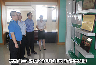 會議結束以后,長沙市中級人民法院副院長黎軍、長沙市人民檢察院副檢察長祝珍明、長沙市僑聯(lián)主席翁少蘭等一行8人饒有興致地親臨綠之韻集團考察指導工作,綠之韻集團董事長胡國安、董事常務副總裁勞嘉、總裁助理方彥雄全程陪同。