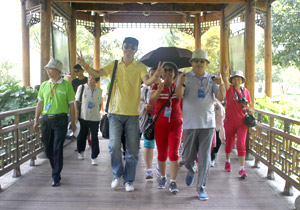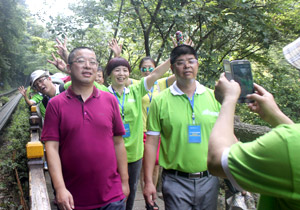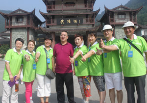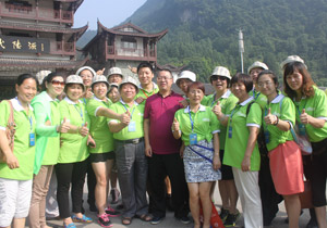 第二天,最讓伙伴們感動的是:伙伴們正準備挺進武陵源景區(qū)大門時,突然見到尊敬的胡國安董事長頂著炎炎烈日、大汗淋漓、在百忙之中走到我們中間,與所有伙伴一起游覽十里畫廊,并一一合影留念。胡董事長說:“爬山好比我們綠之韻事業(yè),開始會有很多的憧憬、愿望、懷疑、憂慮,當我們一步一個腳印前進時,發(fā)現(xiàn)在前行的過程中有很多美麗的風景、可愛的伙伴,但是,也會遇到恐懼、坎坷。在這過程中,有鼓勵你的人、也有打擊的人,關(guān)鍵是自己的毅力與耐力是否能戰(zhàn)勝自己。不管怎樣,我愿意陪伴大家一起走向成功的頂峰。”胡董事長真是太神奇了,他之前的一番話,伙伴們在爬山過程中幾乎全部遇到了。當伙伴們爬過一個小山丘時,有人開心的不得了,尤其是站在山腰往下看到美麗的山與大樹時更是欣喜若狂。大家鼓足勇氣,一鼓作氣爬到了頂峰,每個人的臉上都露出了勝利與幸福的笑容!
