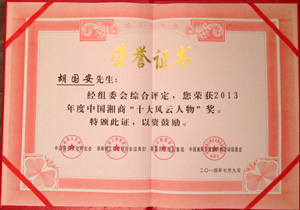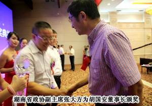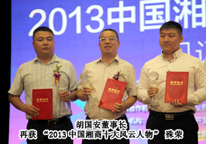 據(jù)悉,本次參加評選的企業(yè)家近200位,由省內(nèi)由各市州工商聯(lián)合推薦,根據(jù)其對企業(yè)成長、行業(yè)發(fā)展以及區(qū)域經(jīng)濟產(chǎn)生的重大影響等多項指標挑選出17名企業(yè)家于2013年年底起在天下湘商網(wǎng)上開展公眾網(wǎng)絡(luò)投票,并同步在《湖南日報》等主流媒體上刊登投票情況。最終,綠之韻集團胡國安董事長憑借多年來在湖南省的利稅大戶、解決就業(yè)、縣域經(jīng)濟、經(jīng)營模式等富民強省方面作出的重要貢獻,再獲殊榮。湖南省政協(xié)副主席張大方為胡國安董事長頒獎,胡國安董事長表示:在“中國夢”成為時代最強音的今天,中國商人應(yīng)該有敢為人先的視野和情懷。“2013中國湘商十大風(fēng)云人物”稱號的獲得,鞭策我轉(zhuǎn)變價值觀,努力成為經(jīng)濟財富的創(chuàng)造者、公益社會的推動者、和諧社會的建設(shè)者、先進文化的創(chuàng)造者。在“忠誠、擔(dān)當(dāng)、求是、圖強”新湖南精神的引領(lǐng)下,我將帶領(lǐng)綠之韻集團發(fā)揮湖湘文化的優(yōu)勢,在湖南“四化兩型”建設(shè)中,在“四個湖南”的建設(shè)中發(fā)奮作為,為富民強省、實現(xiàn)“中國夢”作出新的貢獻!