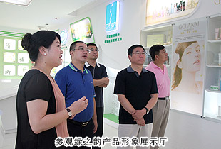 韓杰總隊(duì)長一行首先參觀了綠之韻產(chǎn)品形象展廳,了解“以傳承中華五千年中醫(yī)藥養(yǎng)生文化”為使命的綠之韻中醫(yī)藥文化淵源和脈絡(luò)。“綠色、天然、環(huán)保、健康、養(yǎng)生”的產(chǎn)品研發(fā)理念,以產(chǎn)、學(xué)、研結(jié)合為模式組建的產(chǎn)品科研團(tuán)隊(duì)都受到了韓杰總隊(duì)長的充分肯定。“為了確保產(chǎn)品的品質(zhì),我們希望能夠更為全面的控制產(chǎn)品生物鏈上的所有環(huán)節(jié),包括原料、研發(fā)、生產(chǎn)和銷售,以打造綠之韻‘全產(chǎn)業(yè)鏈條’的產(chǎn)業(yè)結(jié)構(gòu)。我們擁有五大生產(chǎn)基地,其中益陽萬畝中藥材種植基地,為我們的保健食品提供了優(yōu)質(zhì)的產(chǎn)品原料,而‘綠之韻’進(jìn)一步督促我們注重產(chǎn)品品質(zhì),因此,綠之韻先后與南京大學(xué)、湖南中醫(yī)藥大學(xué)、湖南農(nóng)業(yè)大學(xué)、南方醫(yī)科大學(xué)等科研機(jī)構(gòu)、院校展開戰(zhàn)略合作,共同服務(wù)于人類健康,全力打造‘產(chǎn)學(xué)研’成功合作典范”,綠之韻集團(tuán)董事長胡國安向考察團(tuán)一行匯報(bào)。