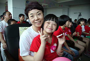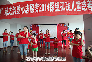 走進兒童活動室,一幅幅生動的場面映入眼簾:在老師的帶領下有的孩子在唱兒歌、有的在做游戲、有的在做康復訓練,一張張?zhí)煺鏌o邪的面容深深地觸動著志愿者們的心靈。生活在福利院里的孤殘兒童,他們是不幸的,但又是幸福的,因為“我有一個幸福的大家庭!”
