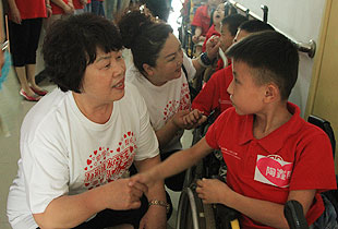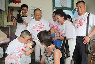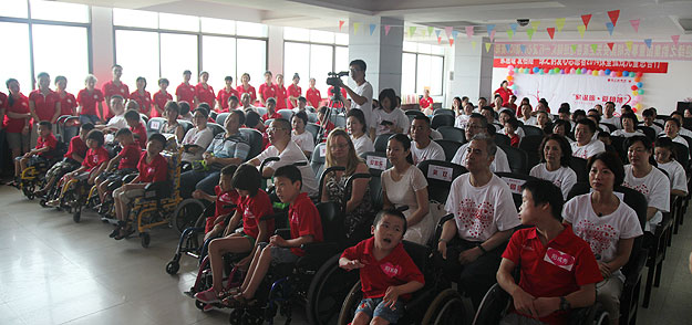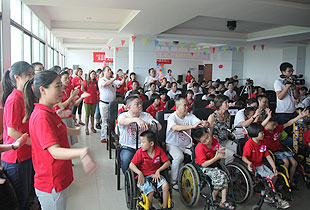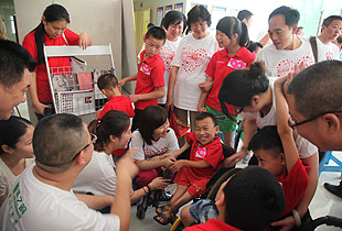 “福利院收養(yǎng)的孩子95%以上都是殘障兒童,其中腦癱又占絕大多數,還有一些唇腭裂、肢體殘疾的患兒”,在衡陽服務了八年的英國籍、ICC衡陽春天福利院負責人愛麗向志愿者們介紹。在這里,還有許許多多的外教,他們遠離祖國無償義務服務在這里,這種無私的精神讓人欽佩和尊敬。在這里,也還有許許多多的“特護媽媽”,他們每天都在照顧著孩子,用自己的滿腔熱情和愛心,無怨無悔當好孤殘兒童的家人,讓每位孤殘兒童都享受到家庭的溫馨、濃濃的親情;他們盡職盡責當好老師,為每位孤殘兒童上好人生的第一課,用真情真愛為孤殘兒童撐起了一片藍天。