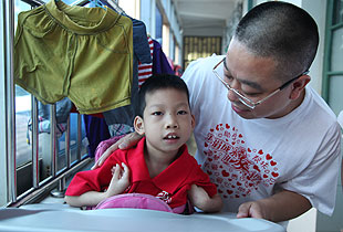 隆隆,患有脊柱裂,身體不是很好,抵抗能力差,很容易感冒,2006 年10 月7 日轉入春天服務中心。今年9月份以前他每天都在院內的培智一班上課,他接受能力很強,反應也很靈敏,學習成績很棒,一直是班上的佼佼者,現在已經被飛雁小學錄取。