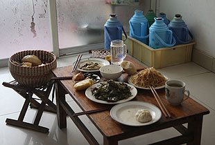 上百種藥瓶藥盒成為這個(gè)家庭最刺眼的標(biāo)簽。貧困母親郭明星,46歲,是全家人的支柱。來(lái)到這個(gè)家時(shí),他們正在準(zhǔn)備吃午飯。幾個(gè)包子、兩碟咸菜、一盤土豆絲,竟就是一家四口人的中餐。簡(jiǎn)單得沒(méi)法用詞語(yǔ)形容。
