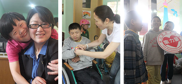 接著,石艷鳳還帶領(lǐng)大家參觀了整個(gè)中心,綠之韻集團(tuán)董事常務(wù)副總裁,綠之韻慈善基金常務(wù)理事長勞嘉不時(shí)詢問孩子們的生活、護(hù)養(yǎng)、治療及康復(fù)情況,與孩子們交流。走到二樓教室,一位成功拼出完整卡通拼圖的孩子的歡呼聲引起了大家的注意。志愿者們情不自禁鼓起掌來,孩子們可愛的笑臉、綠之韻家人們真誠的贊揚(yáng)定格此刻。在今天的晨光中心里,這樣的場面并不偶然,35位護(hù)理人員及老師的悉心照顧下,39位孤殘兒童幸福相依,其樂融融。