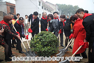 揭牌儀式結束后,胡國安董事長與綠之韻愛心經(jīng)銷商在李勇翔校長的帶領下一起參觀了月山鎮(zhèn)學校的教學環(huán)境,并植下了八棵“希望樹”,希望孩子們就像青青樹苗一樣,充滿生機與朝氣,努力學習,成為國家的棟梁,將來更好地建設家鄉(xiāng)。