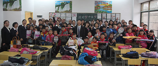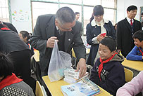 在本次捐贈儀式正式開始之前,還有一個特別溫暖、快樂的互動環(huán)節(jié),60名湘鄉(xiāng)地區(qū)的經(jīng)銷商們,在得知能參與本次愛心活動之后,熱情地準備了書籍、籃球、羽毛球、筆記本、彩畫筆等豐富的文體用品。帶著滿腔的關愛走進教室,跟孩子們交流互動,贈送禮物。“這些物品不算貴重,但卻是孩子們需要的,代表了所有綠之韻愛心志愿者的心愿,希望孩子們知道,有很多人在關心著他們、牽掛著他們。”參與活動的經(jīng)銷商代表傅建華說。