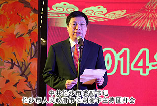 一杯清茶暢敘發(fā)展,務(wù)實(shí)節(jié)儉喜迎新春。2014年1月27日,長沙市各界人士迎春團(tuán)拜會(huì)在楓林賓館隆重舉行。中共長沙市委副書記、長沙市人民政府市長胡衡華主持團(tuán)拜會(huì),中共湖南省委常委、長沙市委書記易煉紅,長沙市人大常委會(huì)主任袁觀清等市委、市人大、市政府、市政協(xié)、市紀(jì)委五套班子領(lǐng)導(dǎo)出席。湖南省工商聯(lián)(總商會(huì))常委、長沙市工商聯(lián)(總商會(huì))副主席、綠之韻集團(tuán)董事長胡國安受邀參會(huì),與全市各界人士代表400多人歡聚一堂,共同辭舊迎新,共話美好未來。