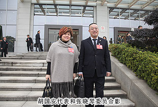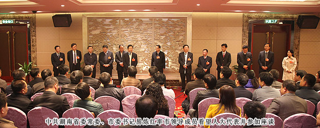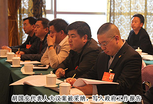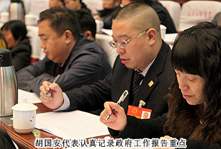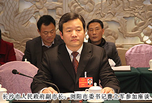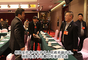 開幕式后,中共湖南省委常委、市委書記易煉紅,中共長(zhǎng)沙市委副書記、長(zhǎng)沙市人民政府市長(zhǎng)胡衡華一行來到各地區(qū)代表團(tuán),與出席市十四屆人大二次會(huì)議的代表們一起審議政府工作報(bào)告,聽取代表們的建議和意見。在瀏陽市代表團(tuán)分組審議座談會(huì)上,就2014年長(zhǎng)沙經(jīng)濟(jì)社會(huì)如何保持平穩(wěn)快速發(fā)展,代表們紛紛獻(xiàn)計(jì)獻(xiàn)策。中共長(zhǎng)沙市委副書記、長(zhǎng)沙市人民政府市長(zhǎng)胡衡華,長(zhǎng)沙市人大常委會(huì)副主任黃佳惠,長(zhǎng)沙市人民政府副市長(zhǎng)、瀏陽市委書記曹立軍等市領(lǐng)導(dǎo)成員仔細(xì)傾聽每位代表發(fā)言,認(rèn)真記錄,還不時(shí)一起探討。胡國(guó)安代表在審議時(shí)針對(duì)胡市長(zhǎng)在講話中提到的“全力打造瀏陽河生態(tài)經(jīng)濟(jì)示范區(qū),把瀏陽經(jīng)開區(qū)培育成新的千億園區(qū)”和“加快移動(dòng)電子商務(wù)基地建設(shè),促進(jìn)電子商務(wù)加速發(fā)展,爭(zhēng)創(chuàng)國(guó)家電子商務(wù)示范基地”的兩個(gè)觀點(diǎn),他結(jié)合園區(qū)、綠之韻集團(tuán)實(shí)際,詳盡闡述了綠之韻集團(tuán)的生態(tài)經(jīng)濟(jì)發(fā)展思路,以及在瀏陽河與撈刀河畔建立生態(tài)休閑區(qū)、建設(shè)五星級(jí)生態(tài)酒店和綠之韻連鎖酒店、發(fā)展湖南黑茶產(chǎn)業(yè)、打造藍(lán)莓產(chǎn)業(yè)鏈等未來八大發(fā)展規(guī)劃。胡衡華、黃佳惠、曹立軍等省市領(lǐng)導(dǎo)認(rèn)真聆聽胡國(guó)安代表的發(fā)言,邊聽邊記,邊記邊問,對(duì)發(fā)言中提及的思路和做法表示高度的肯定。由于胡國(guó)安代表長(zhǎng)期扎根基層,服務(wù)群眾,盡職履責(zé),深入調(diào)研,連續(xù)兩屆擔(dān)任人大代表,所提交的議案均緊扣社會(huì)熱點(diǎn)和難點(diǎn),普遍反映比較強(qiáng)烈,長(zhǎng)沙市人民政府副市長(zhǎng)、瀏陽市委書記曹立軍對(duì)此印象十分深刻。分組審議后,曹立軍副市長(zhǎng)立軍同胡國(guó)安代表進(jìn)行了面對(duì)面的親切交談。他向胡國(guó)安代表不久前獲評(píng)“長(zhǎng)沙市優(yōu)秀人大代表典型風(fēng)采人物”表示祝賀,希望胡國(guó)安代表進(jìn)一步發(fā)揮出人大代表參與決策、監(jiān)督協(xié)助、橋梁紐帶的作用,為長(zhǎng)沙全面推進(jìn)“六個(gè)走在前列”、率先建成“三市”、強(qiáng)力實(shí)施“三倍”、加快現(xiàn)代化進(jìn)程,作出更大的貢獻(xiàn)!