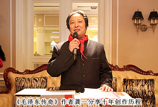 《毛澤東傳奇》新書發(fā)布暨媒體見面會(huì)環(huán)節(jié),作者龔一分享了自己的創(chuàng)作之路。他花了十年功夫?qū)懴率澜缡撞啃滦螒B(tài)故事版《毛澤東傳奇》共10券,400余萬字,以科學(xué)準(zhǔn)確的歷史觀,生動(dòng)真實(shí)地記錄了毛澤東跌巖起伏、富有傳奇色彩的一生,全景式、立體豐滿地還原了一位開國(guó)領(lǐng)袖人生歷程,內(nèi)心世界以及與中國(guó)近代歷史、國(guó)家命運(yùn)血肉關(guān)系與巨大的牽引力,這是迄今為止表現(xiàn)毛澤東一生最為全面、最為翔實(shí)一部故事版巨著,是中共黨史、領(lǐng)袖人物傳記領(lǐng)域里又一力作。