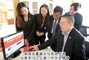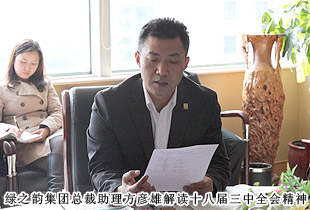 黨的十八屆三中全會(huì)勝利閉幕后,綠之韻集團(tuán)黨總支部、團(tuán)支部迅速行動(dòng)起來(lái),認(rèn)真學(xué)習(xí)、理解、領(lǐng)會(huì)和實(shí)踐“十八屆三中全會(huì)”精神,在集團(tuán)公司迅速掀起學(xué)習(xí)貫徹““十八屆三中全會(huì)”的熱潮。