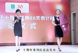 啟動儀式上,綠之韻集團品牌設計師彭興、綠之韻國際商學院講師宋沂芳為大家介紹了“十周年終端氛圍營造”活動的概況,包括“十周年品牌形象終端氛圍布置”、“十周年外場視覺設計布置方案及舞美設計發(fā)布”和“十周年紀念品開發(fā)”三個方面。在全場期待的目光中,十周年禮品實物:十周年紀念茶、十周年紀念圍巾、十周年發(fā)光紀念胸章、十周年卡片U盤、十周年紀念傘、十周年紀念多功能包(洗漱包)、十周年紀念幣,首次全景呈現(xiàn)在大家的眼前,迎來了全場一陣又一陣尖叫聲!